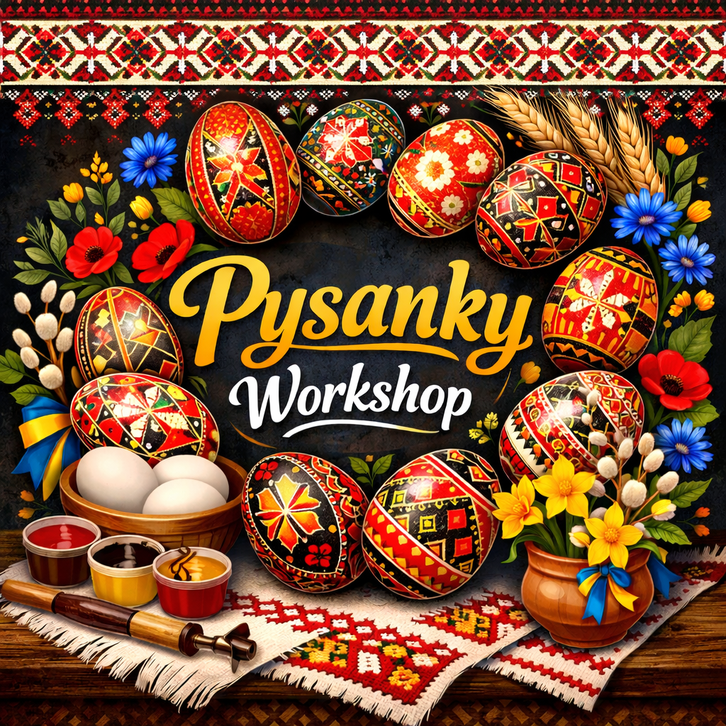 Join us to learn the traditional Ukrainian art of pysanky, created with wax and dye. No experience is necessary. Come celebrate Ukrainian culture, preserve tradition, and enjoy a meaningful afternoon together. All proceeds will support Ukrainian war victims.